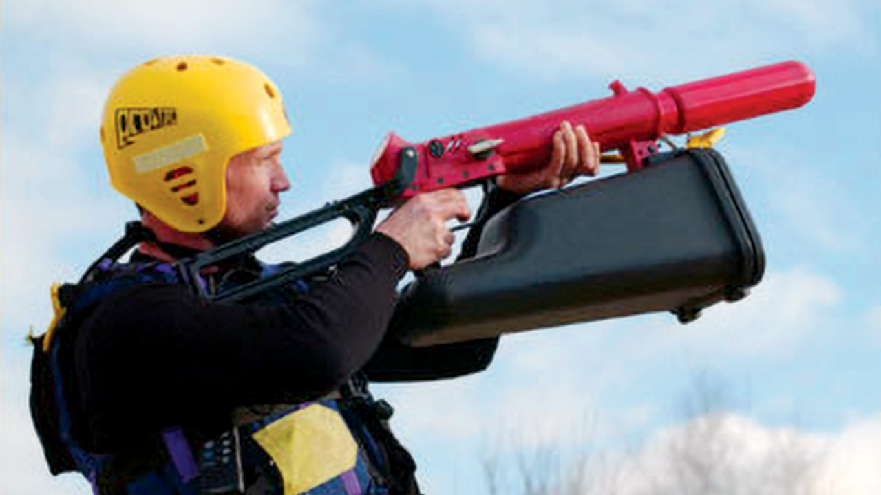 Can Yeleği Fırlatıcı, kendiliğinden şişen yüzer emniyet kemerini ve buna bağlı çekme ipini fırlatır. Can Yeleğinde bulunan mekanizma, suya değdiği anda şişer ve 136kg ağırlıktaki bir insanı yüzdürebilecek kaldırma kuvveti sağlar.